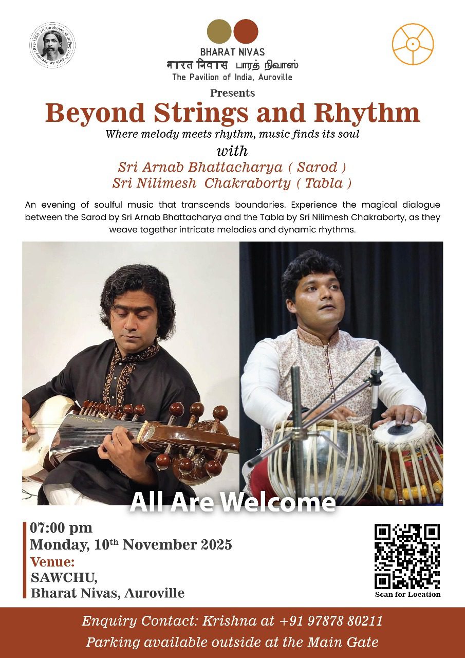 An evening of soulful music that transcends boundaries. Experience the magical dialogue between the Sarod by Sri Arnab Bhattacharya and the Tabla by Sri Nilimesh Chakraborty, as they weave together intricate melodies and dynamic rhythms.