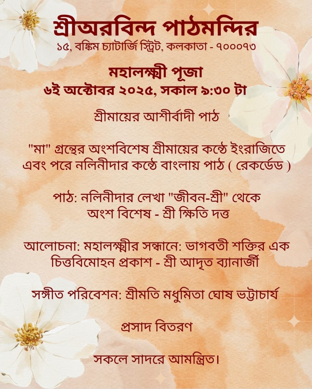 Reading out from “The Mother” in English by the Mother and then in Bengali by Sri Nolini Kanta Gupta ( Recorded )