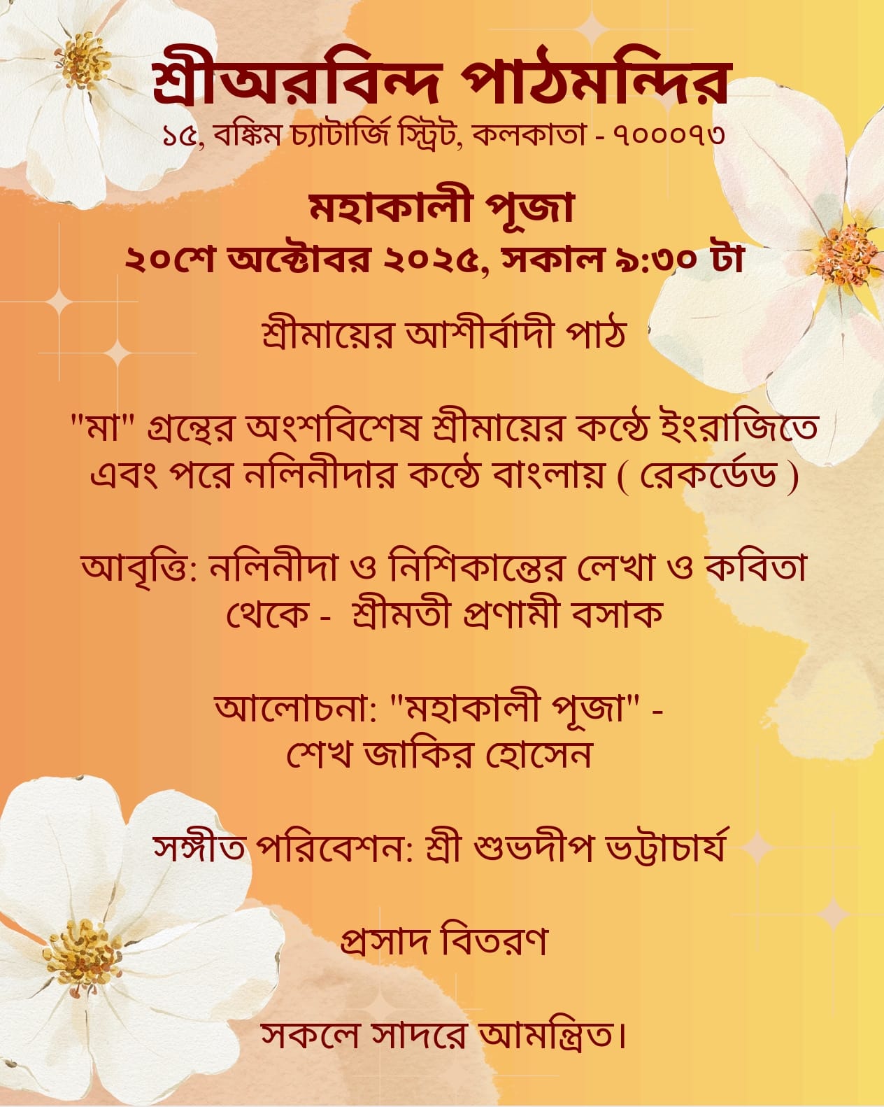 Recitation in Bengali from the writings of “Nolini Kanto Gupta” and from the Poems of “Nishikanto”
