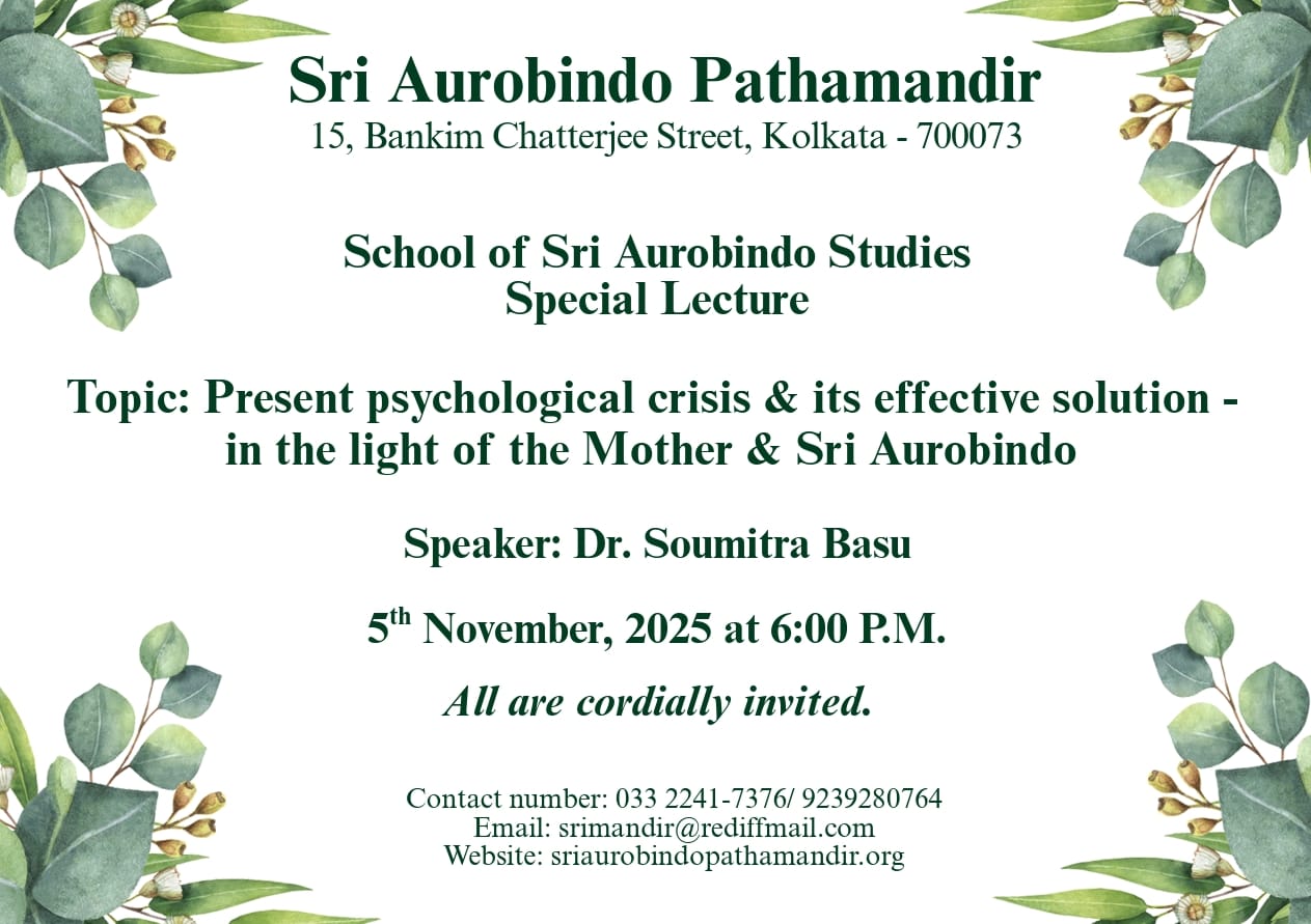 Topic: Present psychological crisis & its effective solution -in the light of the Mother & Sri Aurobindo